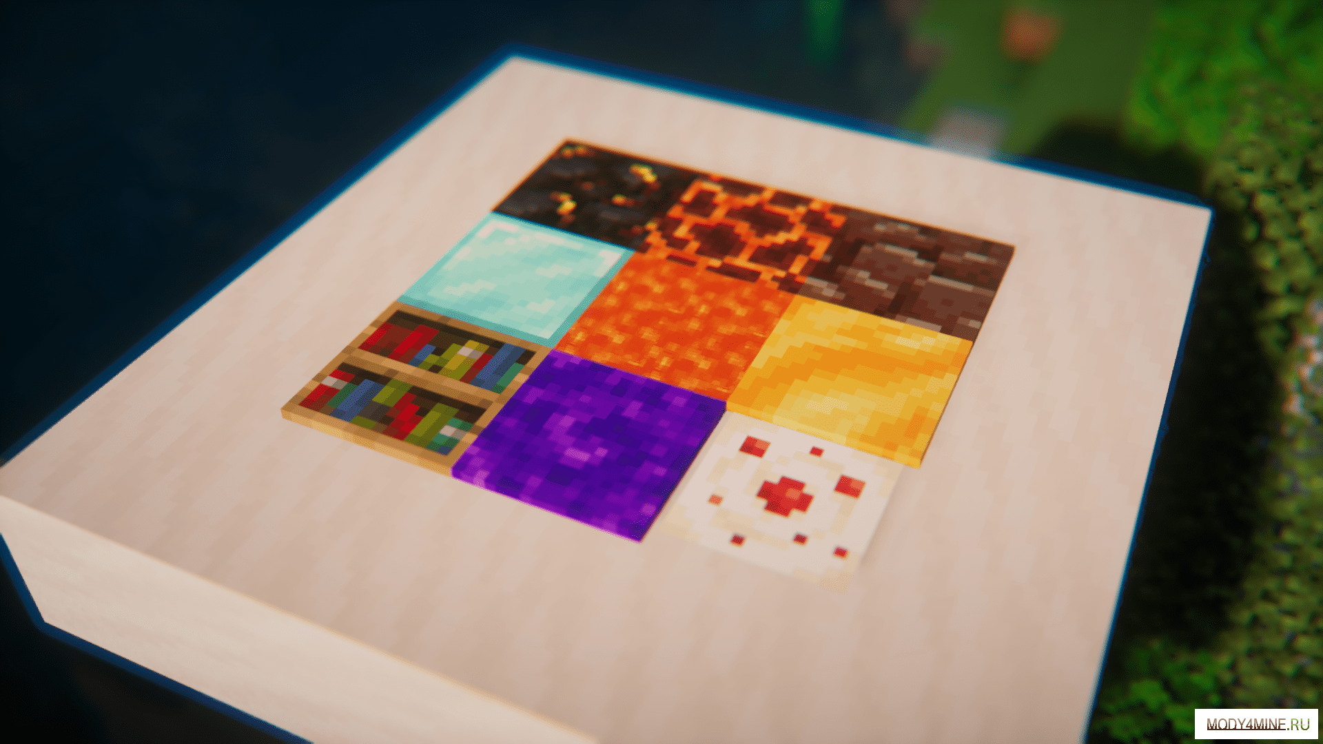 Автором заявлено около двухсот сорока вариантов, включая порталы, лаву, огонь, торты и остальное. Любые ценные ресурсы, породы, резные плитки или мебель. Носят декоративный характер, невозможно использовать по назначению, а также получить урон. Превращайте стандартные разноцветные коврики в более интересные экземпляры, разыгрывайте друзей на сервере!