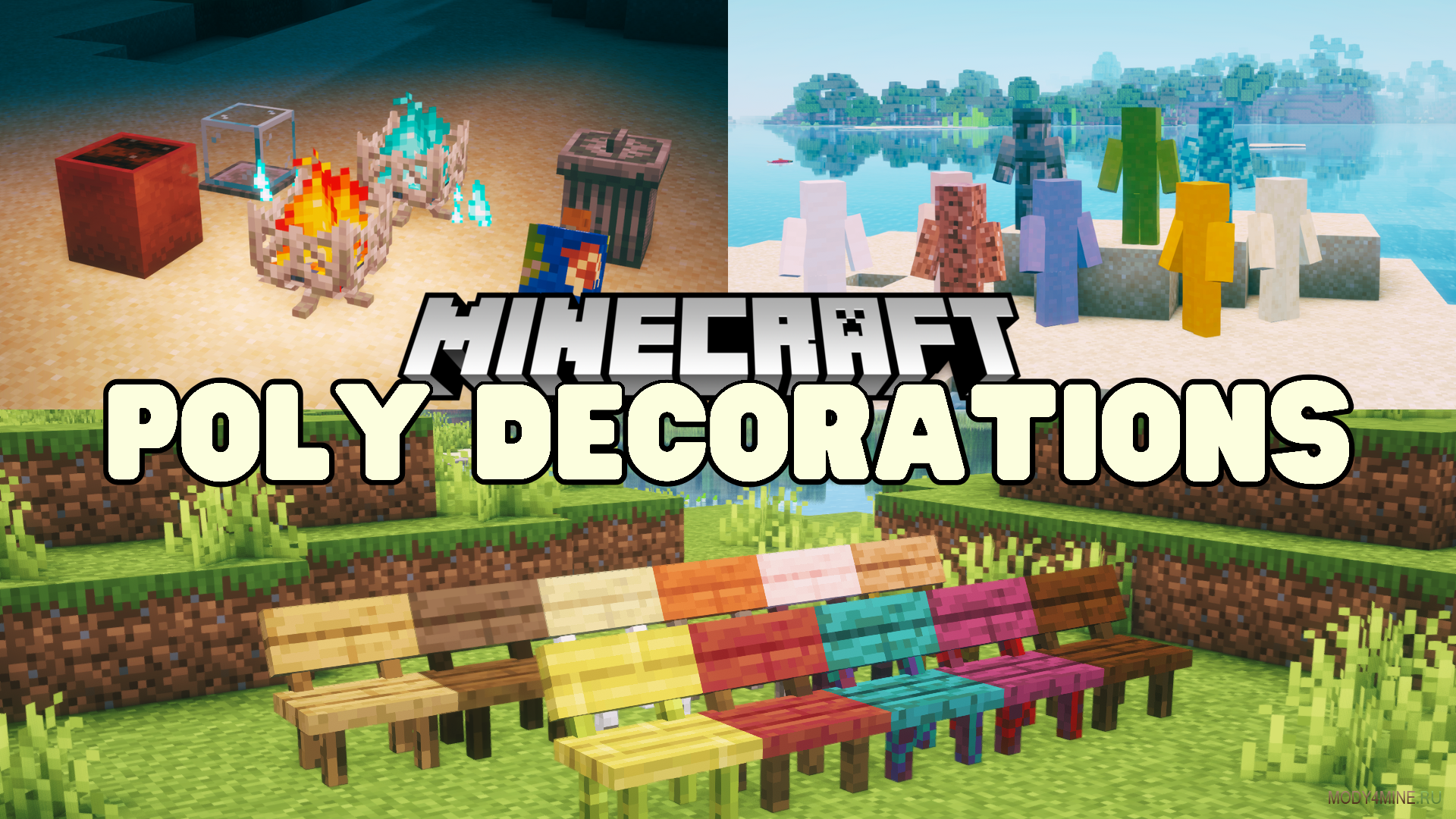 Приятный набор комфортной мебели. Мод PolyDecorations добавит маленькие декоративные предметы для украшения окружения. Создатель постарался сделать объекты максимально аутентичными, сохраняя малополигональный формат оригинальной игры и используя стандартные текстуры используемых ресурсов.