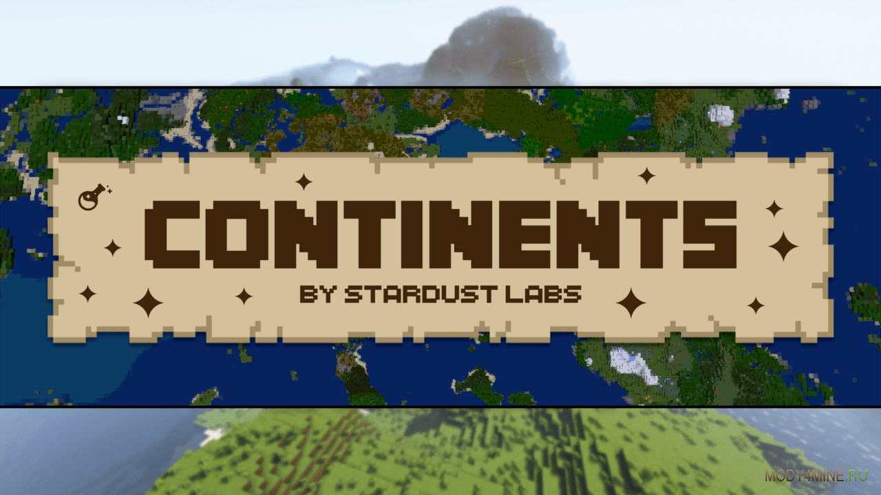 Выживание в природе на масштабных территориях. Мод Continents добавит генерацию реалистичных континентов, но со стандартными ресурсами. Востребованное нововведение для разнообразия игровых земель, создающее атмосферу исследования реальной дикой местности. Высокая совместимость со сторонними проектами изменяющими генератор, включая большие биомы.