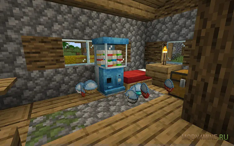 Испытайте удачу в классических капсульных лотереях. Мод Bloo’s Gacha Machine добавит гача автоматы с рандомными полезными призами для выживающих. Компактные минималистичные машины, прямиком с японских улочек. Их может быть десяти штук в одном мире, иначе нарушится баланс случайностей, вредящей "экономике" выживания.