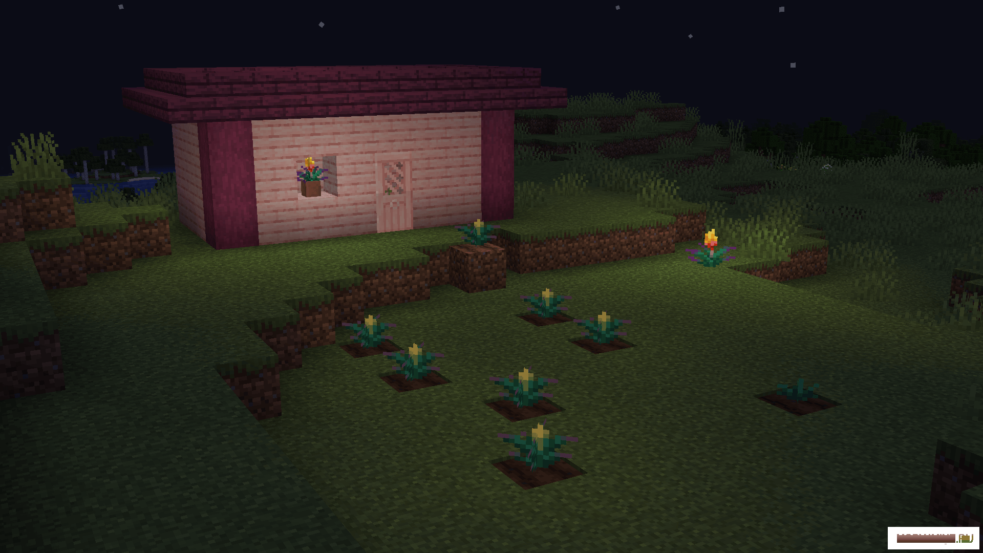 Теперь цветочки излучают свечение, красиво смотрясь в ночное время суток. Они определённо подойдут любому саду, а также защитят территорию от спавна монстров. Будучи ростком, свет распространяется лишь на три блока, затем увеличивается до семи, а в выросшем состоянии составляет двенадцать. Более того, размещённые в горшке цветы светят на четырнадцать метров и отлично смотрятся внутри помещений.
