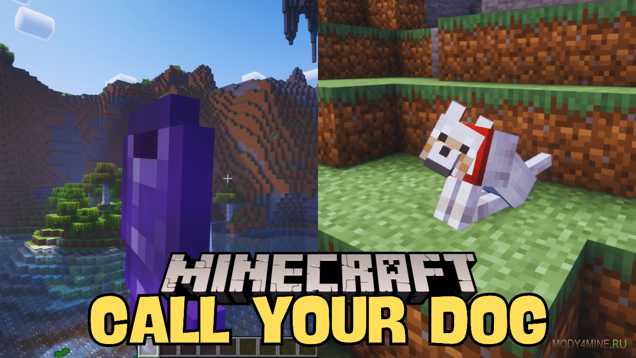 Вызывайте / спасайте питомца своеобразным собачьим свистком. Мод Call Your Dog добавит призыв прирученной собаки стандартным горном. Существуют различные дополнения на вызов питомцев, включая лошадей, однако одомашненные волки отличаются особенной любовью, являясь отличными компаньонами в путешествиях.