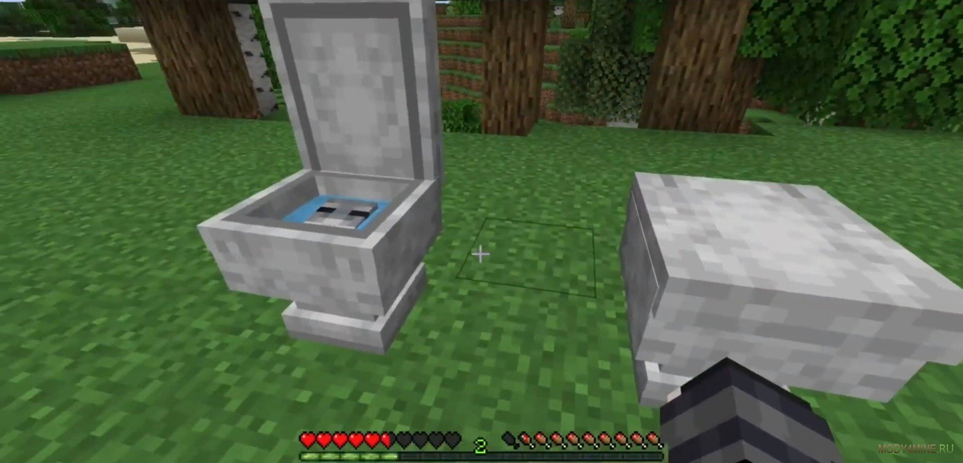 Игроки смогут крафтить туалеты, размещаемые на поверхности. На них можно присесть и очистить инвентарь от стаков грязи взамен на опыт. Открываются на Shift + клик в любой момент. С 40% шансом может появиться дух. Больше XP при размещении задней точки на нём, но и одновременный постоянный урон. Избавиться от привидения можно лишь при помощи вантуза.