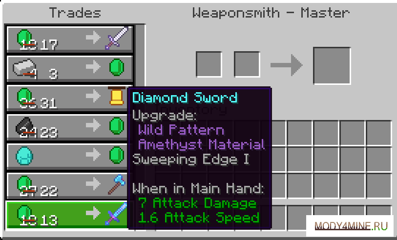 Большая доступность элемента апгрейда доспехов. Мод Naturally Trimmed добавит шаблоны для брони генерирующиеся на мобах, в магазинах NPC и во всех сундуках ванильных структур. Формочки для улучшения экипировки — наиболее интересное нововведение из последних официальных апдейтов. Теперь их проще достать, увидеть в действии.